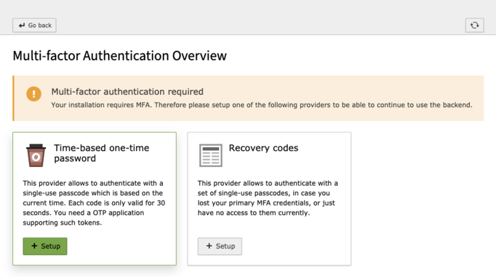 Multi-factor authentication—or in short MFA—is shipped with the latest TYPO3 version 11.1.