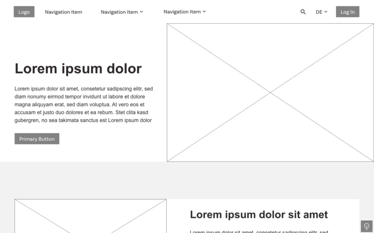 Es gibt viele Überschneidungen zwischen Wireframing und Prototyping - man kann sich das Wireframing als eine Art Low-Fidelity-Prototyp vorstellen. Ein einfaches Wireframe ist wie eine Blaupause. Es besteht aus statischen Bildschirmen und enthält Informationen über die Funktion, die Struktur und den Ablauf der Website, aber keinen tatsächlichen Inhalt oder Styling. Weitere Informationen zum Wireframing findest Du in unserem jüngsten Blogbeitrag Die Erfolgsmethode Wireframing.