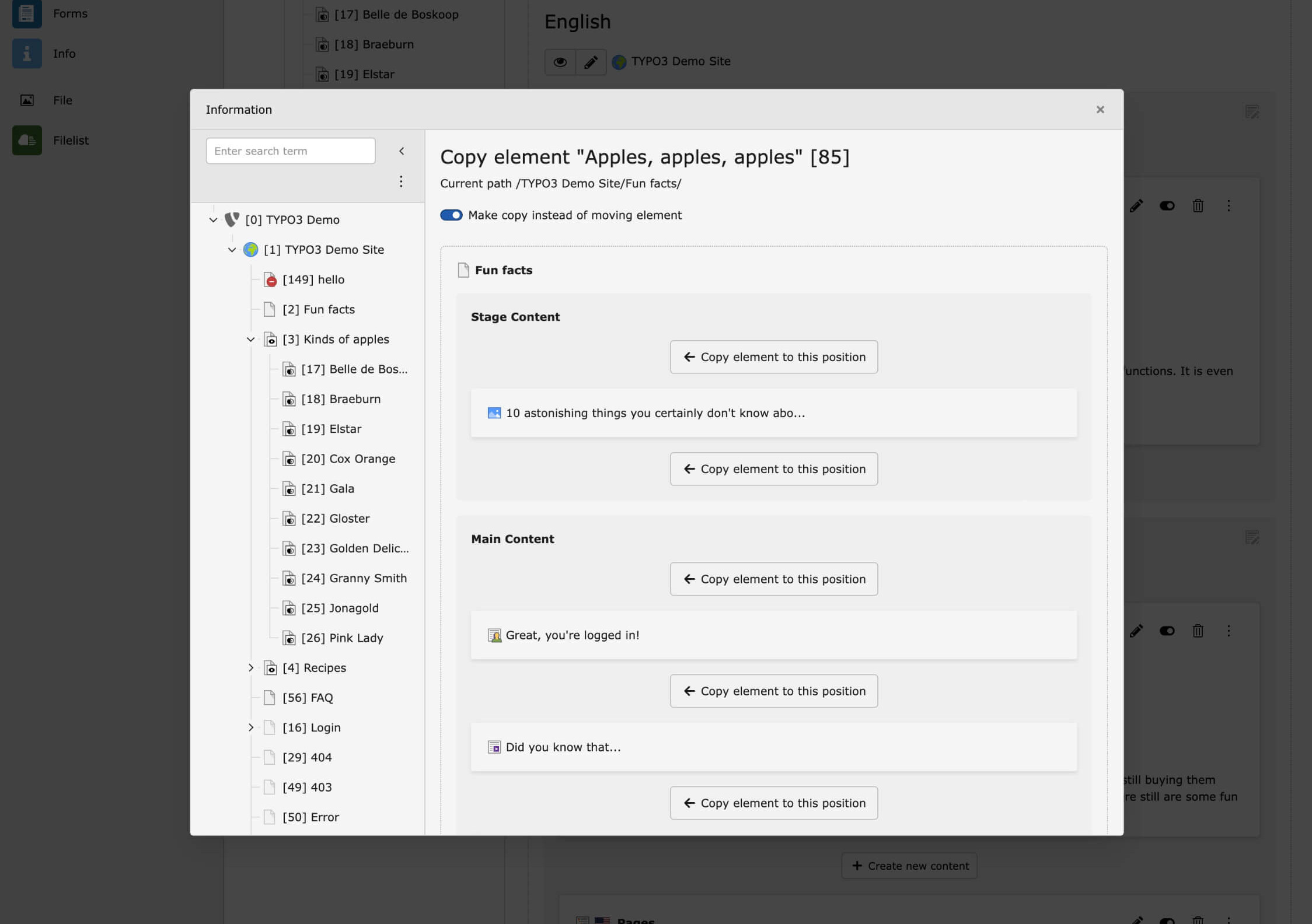 Inhaltselemente verschieben? Ganz einfach per Drag & Drop — sogar seitenübergreifend. Das frühere Ausschneiden und Einfügen über das Clipboard ist zwar noch möglich, aber nur einer der vielen Wege, um schnell zum Ziel zu kommen.